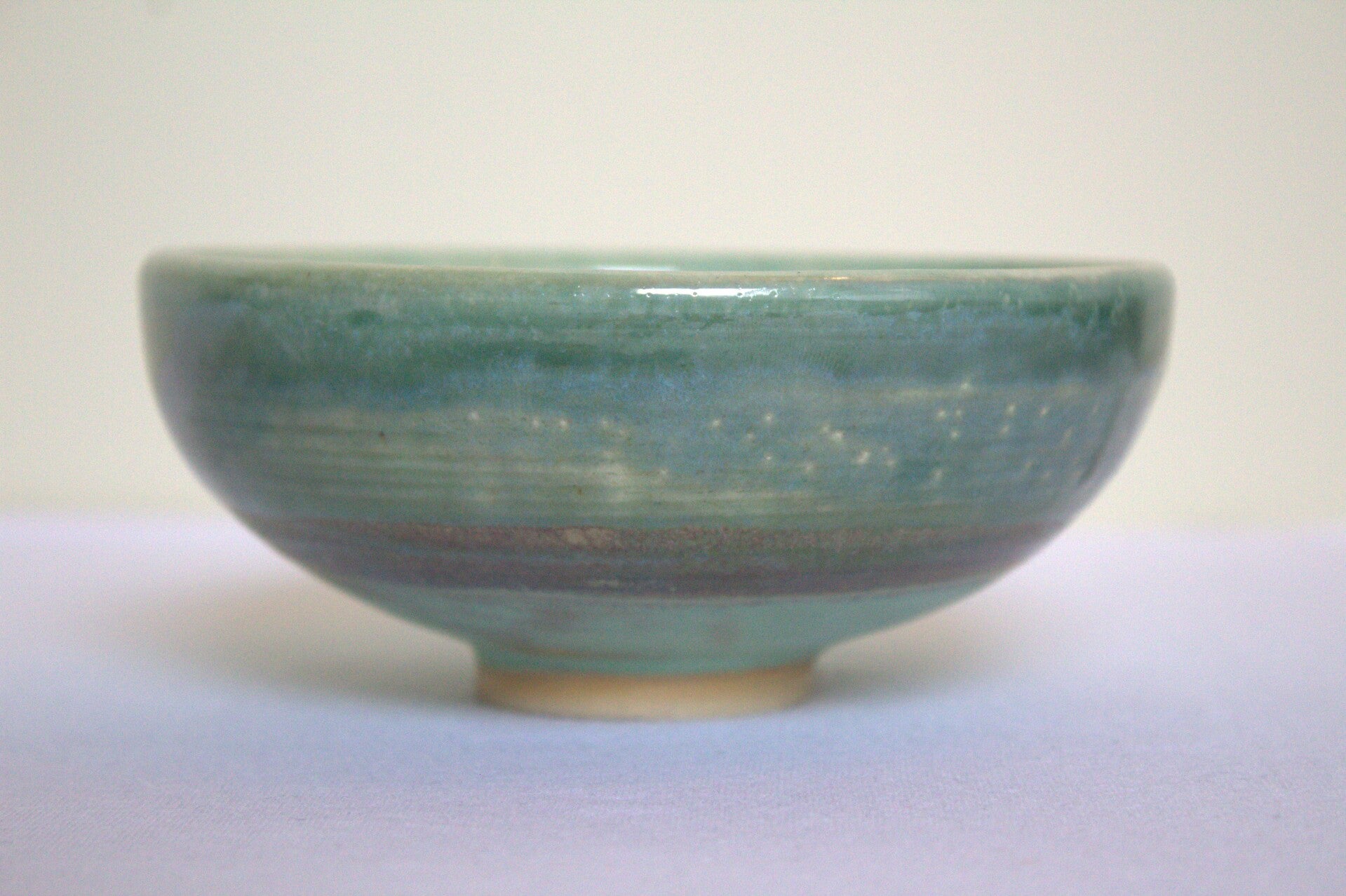 Deze gedraaide kommetjes van witbakkende klei zijn bewerkt met een combinatie van glazuren.